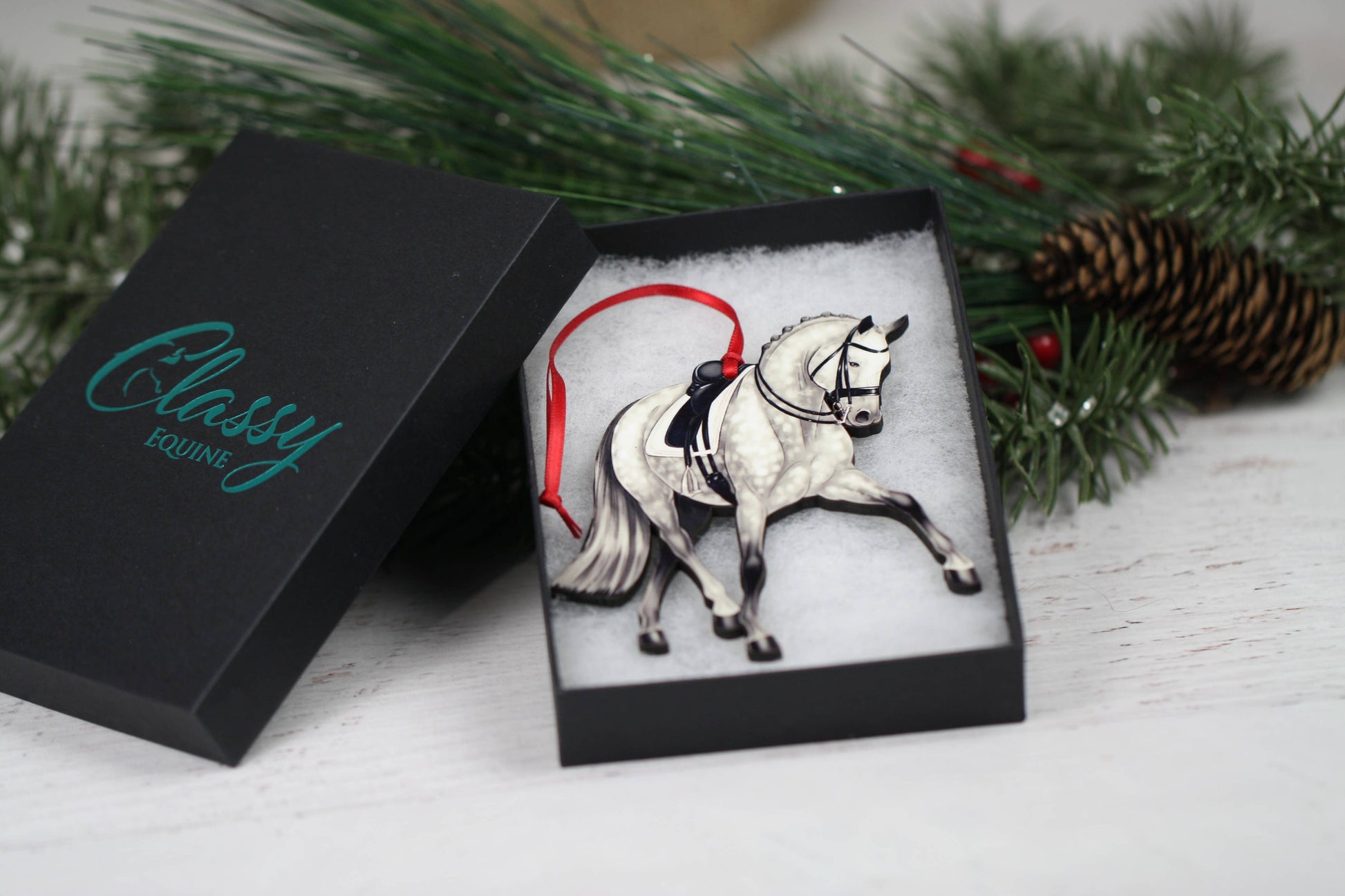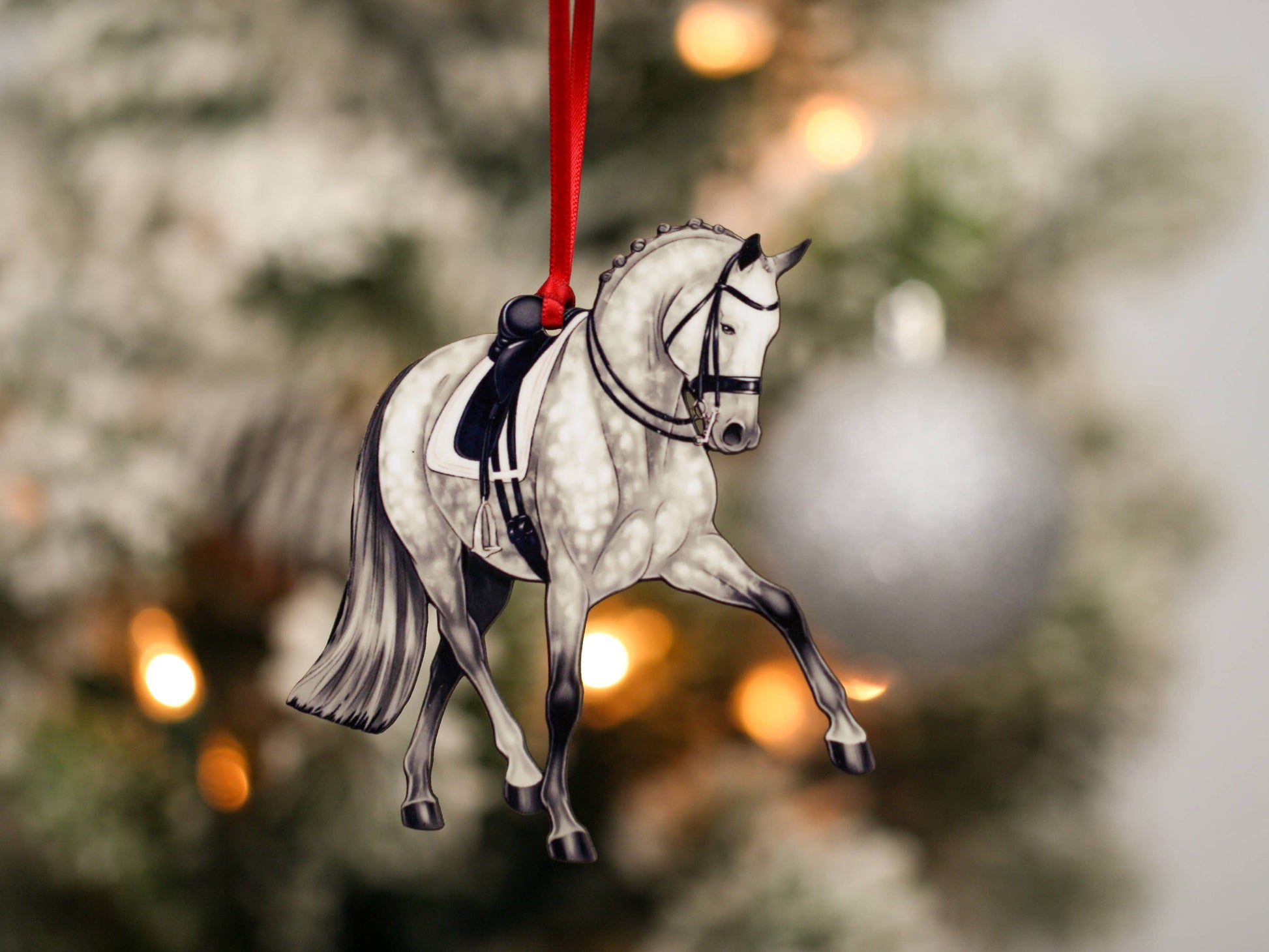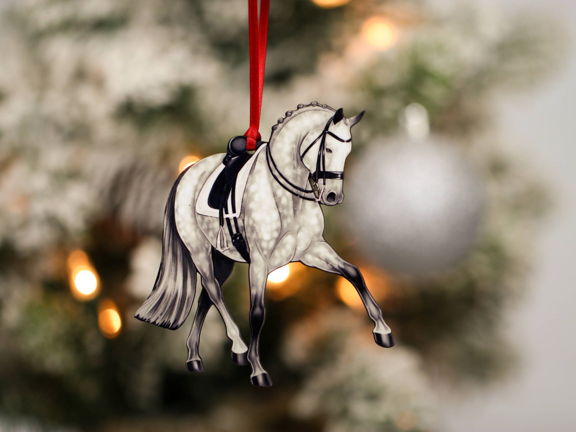 Dressage Horse Christmas Ornament - Gray Half Pass Dressage