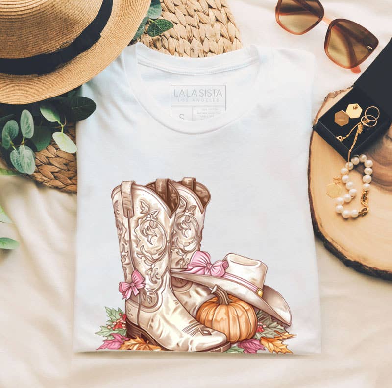 FALL COWGIRL BOOTS WESTERN GRAPHIC T SHIRT
