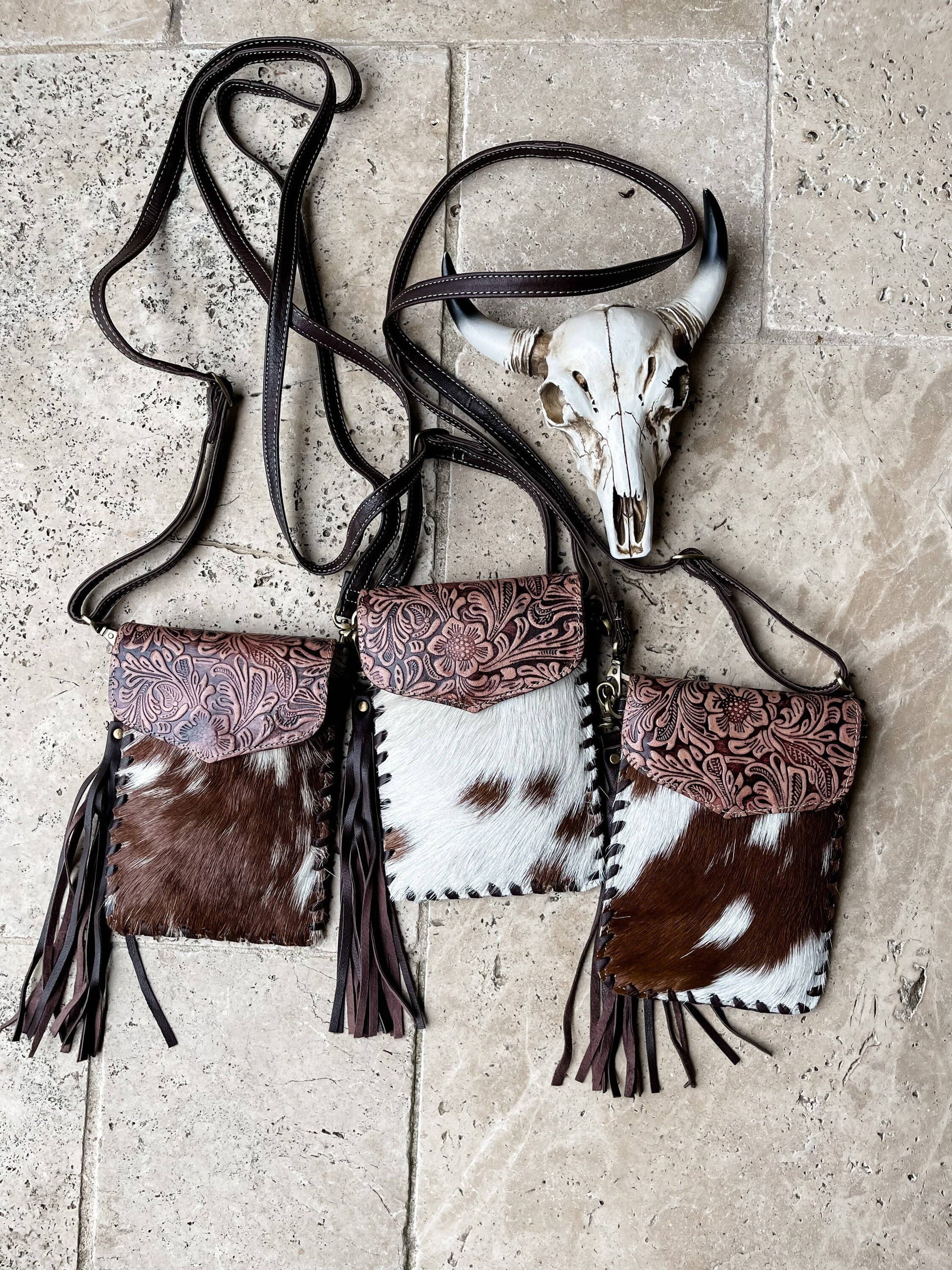 Every purse will be one of a kind as each purse contains a unique cowhide pattern.