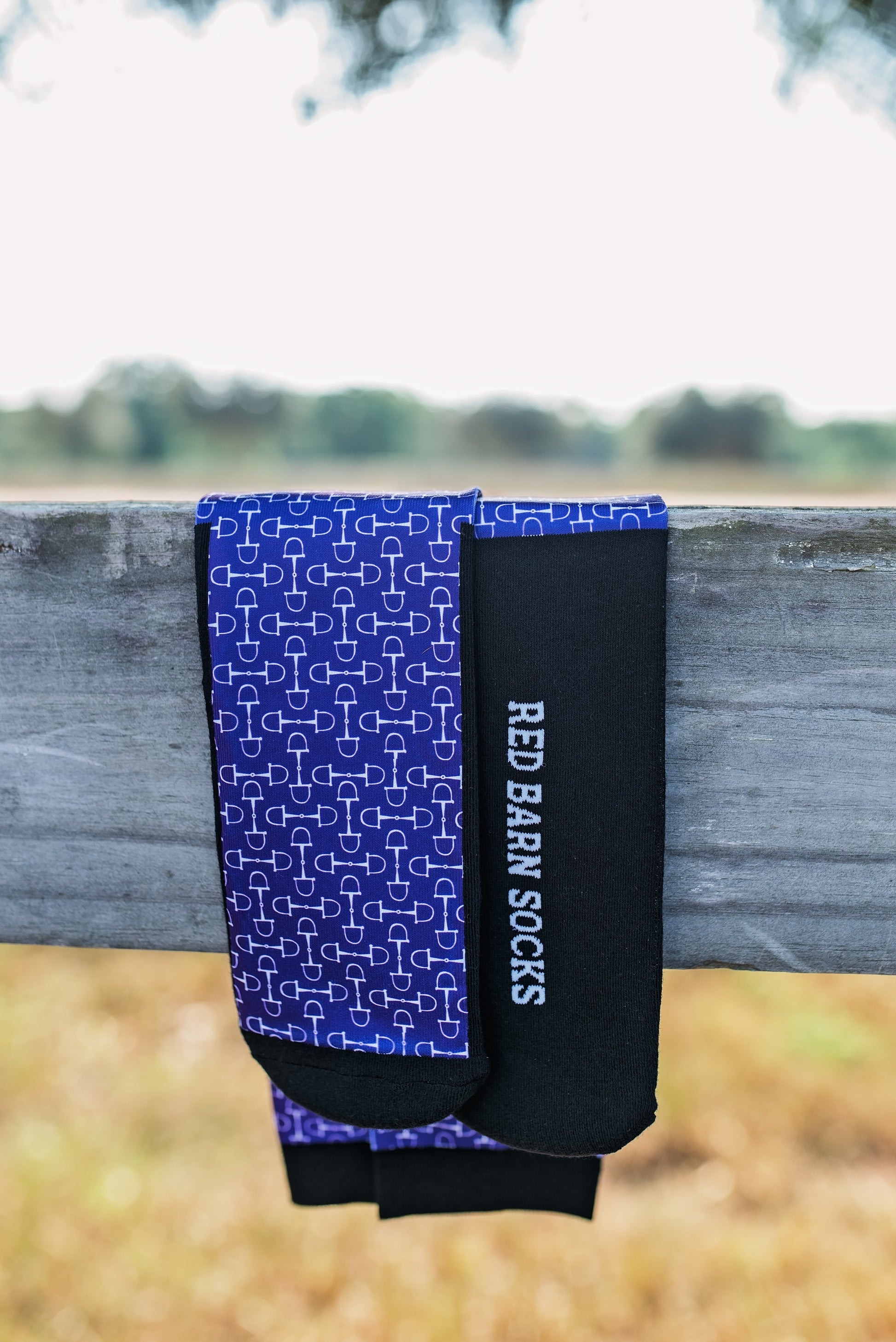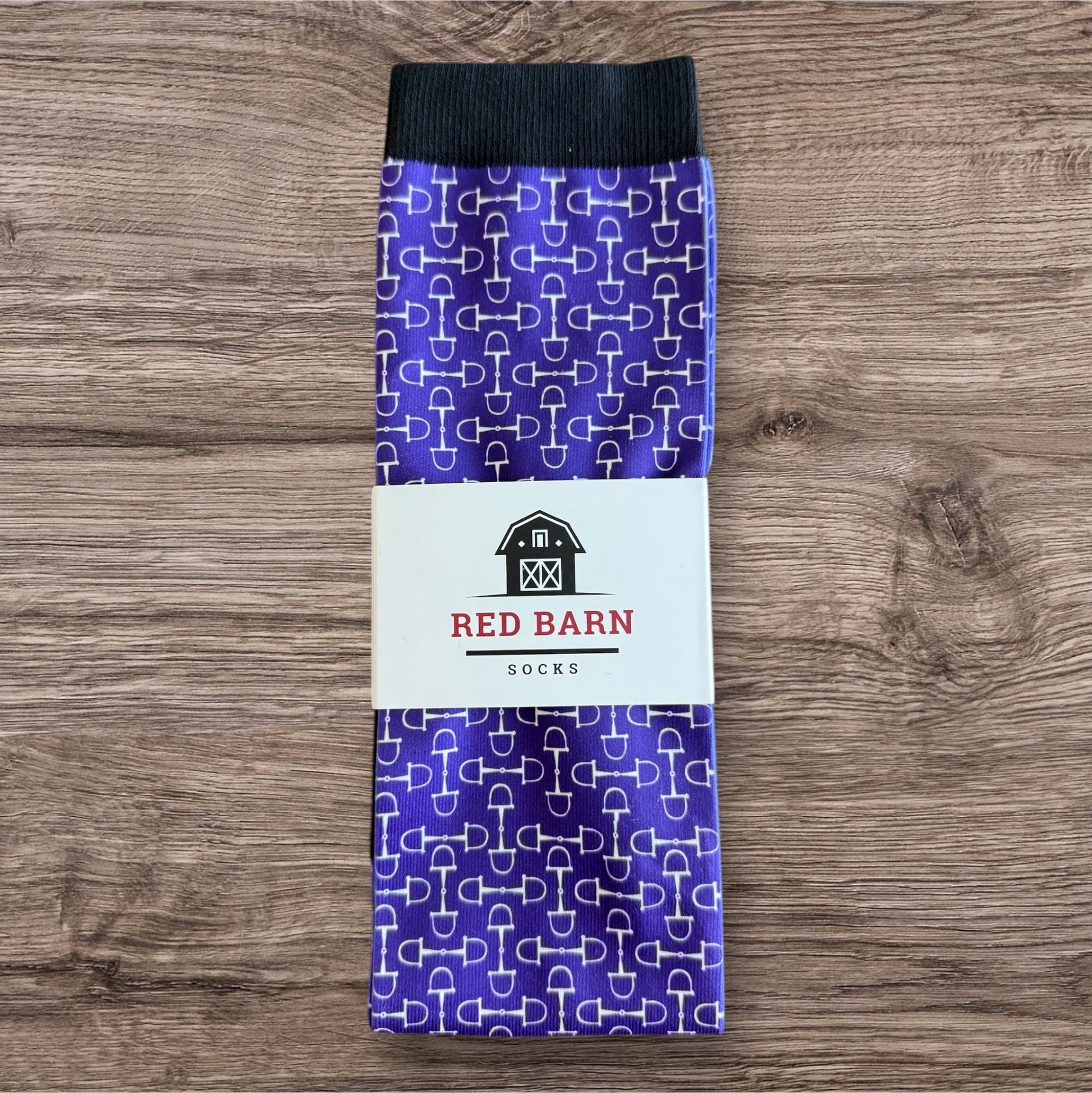 Turn up the style in your stride with our Snaffle Chic socks. Featuring a crisp snaffle bit pattern set against a bold purple background, these socks bring a perfect blend of equestrian elegance and modern flair. Ideal for slipping under tall boots at the barn or adding a pop of horse-loving flair to your everyday outfit.