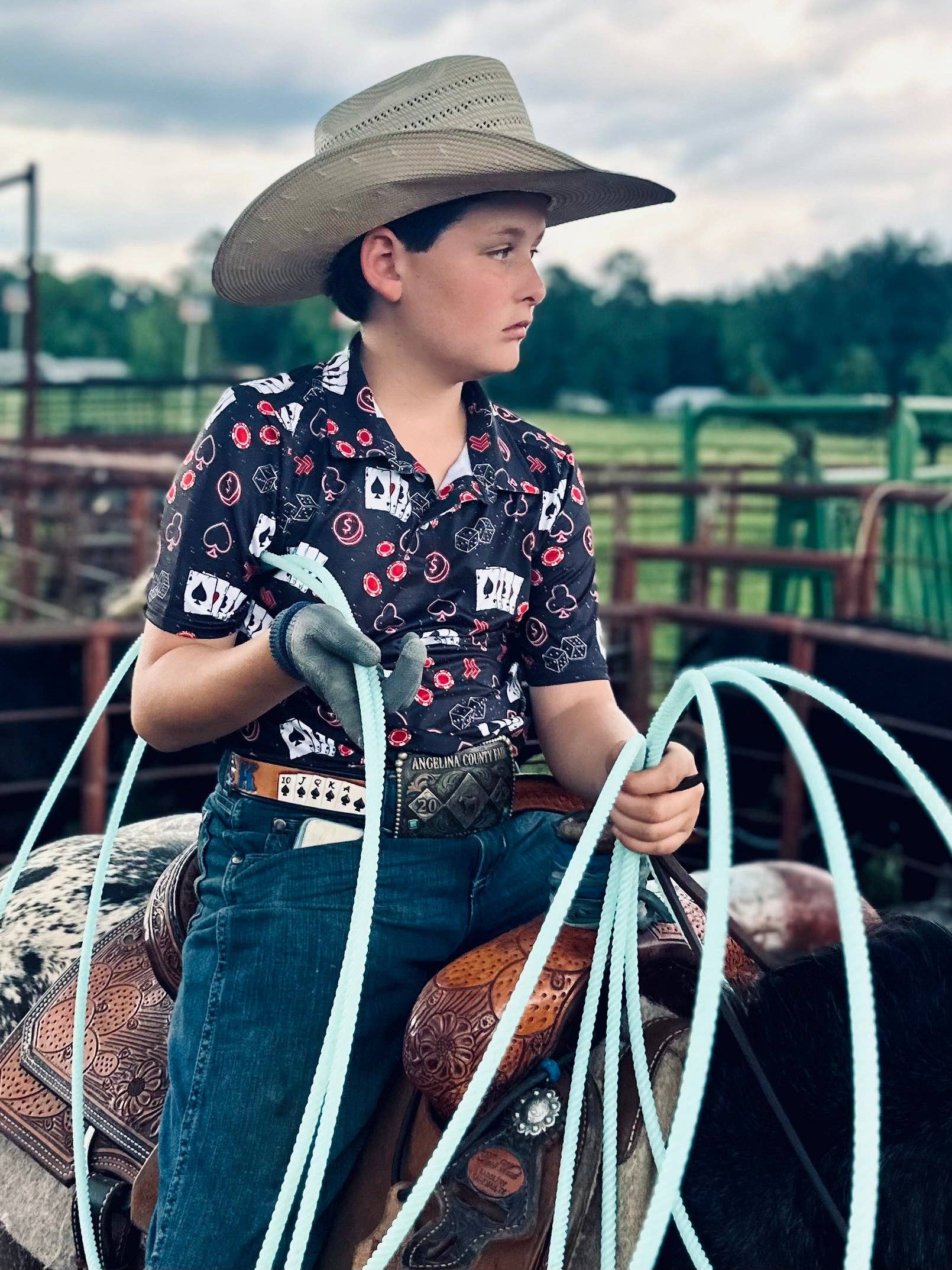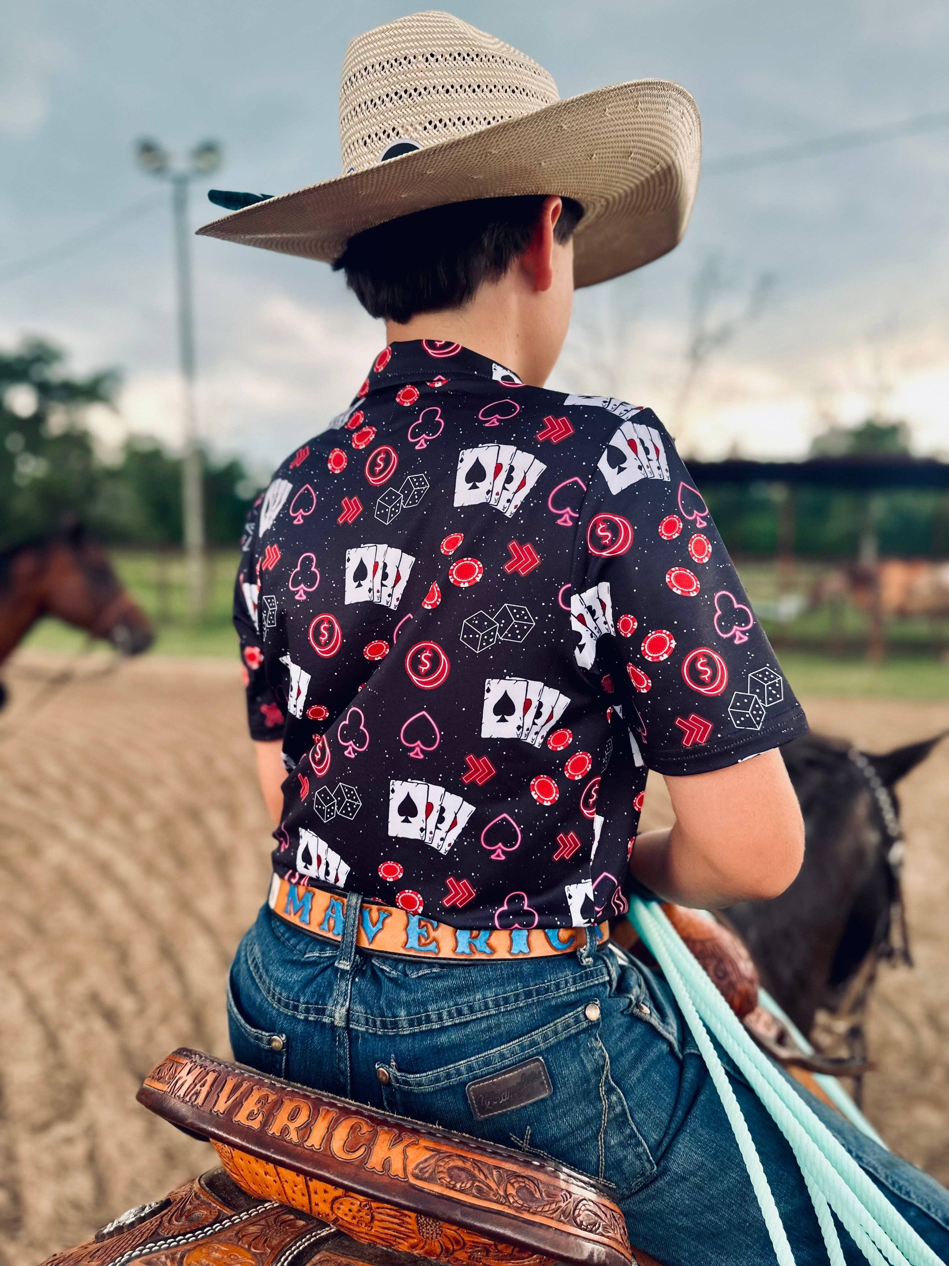 The Gambler Polo - Youth, a product of Legends and Mavericks Apparel, is designed for young mavericks who dare to pave their own path. This kids' t-shirt is more than just apparel, it's a symbol of courage and individuality. Inspired by the legacy of Legend, it's a testament to the spirit of our brand's story about embracing the unconventional. Remember, if you wanna be a legend, you gotta be a maverick!