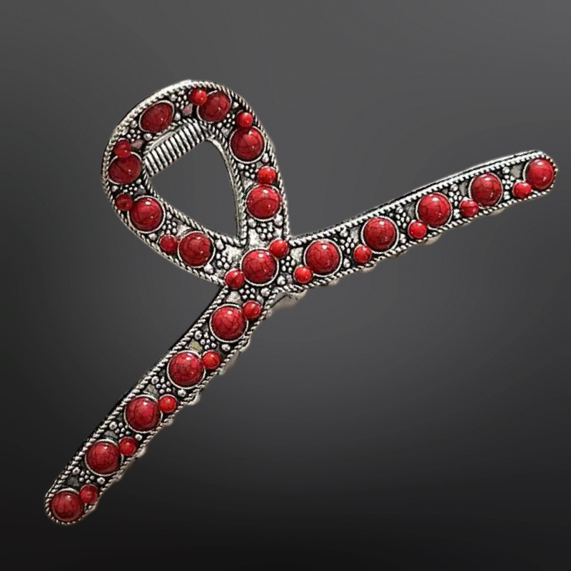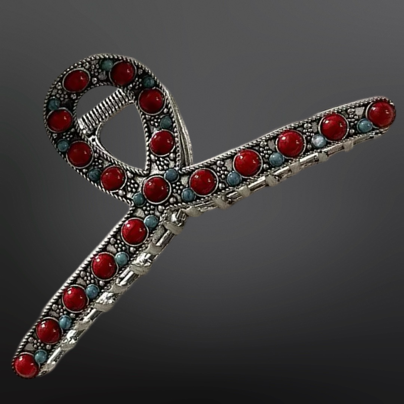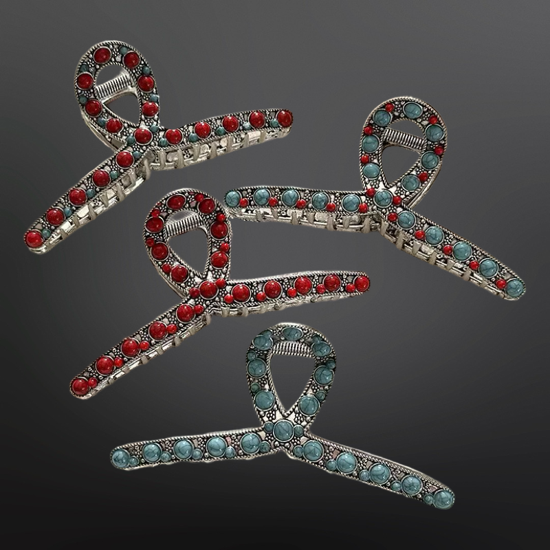 Add a touch of rustic charm to your hairstyle with our Western Beaded Claw Clip. Designed with a sturdy grip and a comfortable hold, this accessory blends functionality with vintage Western flair. Imitation turquoise and/or coral beads are arranged in intricate patterns, evoking the spirit of the Southwest. Whether you’re taming tousled waves or finishing off a braided look, this claw clip adds a bold, boho accent to your everyday style. Perfect for rodeo nights, country concerts, or just channeling your cowgirl energy.