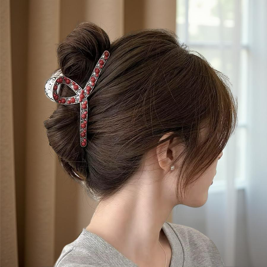 Western Turquoise Coral Claw Clip Beaded Hair Clip